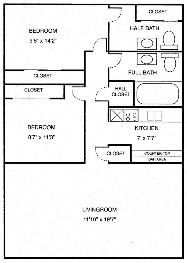 Apartment Model: 2br/1.5ba 800sf$1,1992 Bedroom, 1.5 Bath, 800 sq ftUnavailable![]()