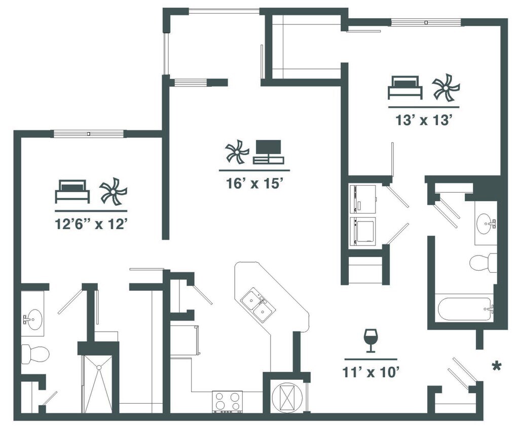 2 Beds, 2 Baths, 1186 sq ftAvailable NowModel Gallery