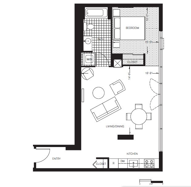 Studio (AS2) - Image 5 Floor plans are artist's rendering. All dimensions are approximate. Actual product and specifications may vary in dimension or detail. Not all features are available in every rental home. Prices and availability are subject to change. Base rent is based on monthly frequency. Additional fees may apply, such as but not limited to package delivery, trash, water, amenities, etc. Deposits vary. Please see a representative for details.