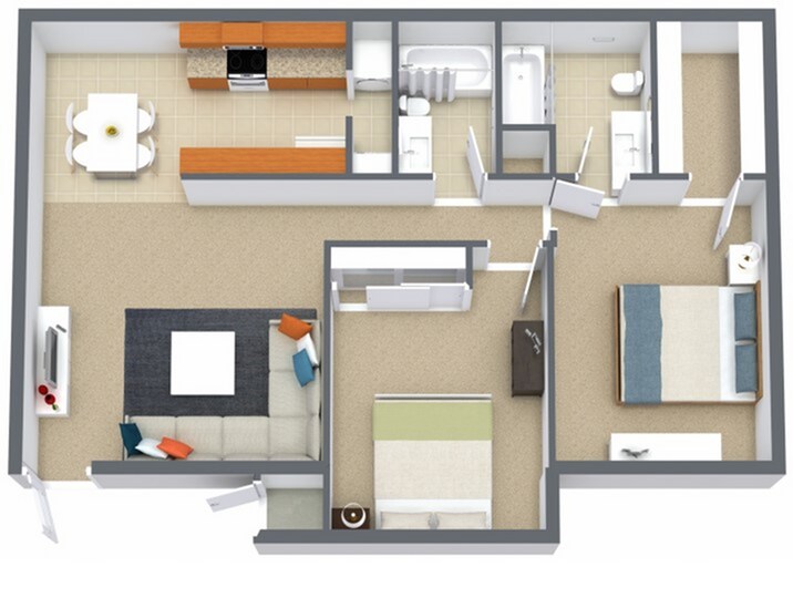 2 Beds, 1 Bath, 902 sq ftAvailable NowModel Gallery