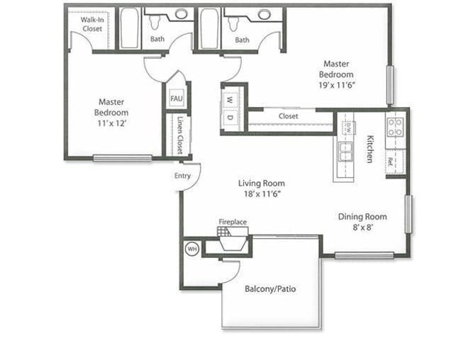 Apartment Model: 2x2From $2,8422 Bedroom, 2 Bath, 1000 sq ftAvailable NowFloor plans are artist's rendering. All dimensions are approximate. Actual product and specifications may vary in dimension or detail. Not all features are available in every rental home. Prices and availability are subject to change. Base rent is based on monthly frequency. Additional fees may apply, such as but not limited to package delivery, trash, water, amenities, etc. Deposits vary. Please see a representative for details.