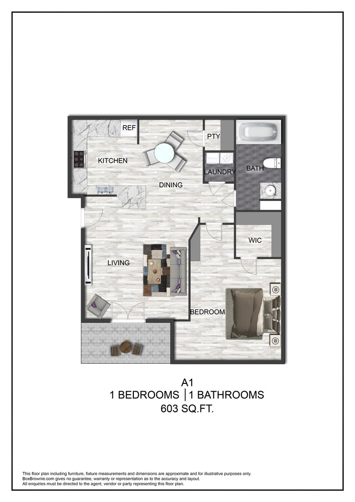Apartment Model: A1From $9191 Bedroom, 1 Bath, 603 sq ftUnavailable![]()