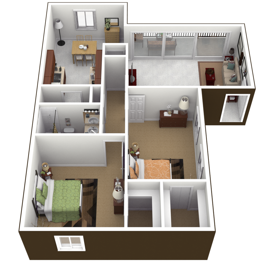 Apartment Model: 2 Bedroom, 1 BathroomCall For Rates2 Bedroom, 1 Bath, 950 sq ftUnavailable![]()
