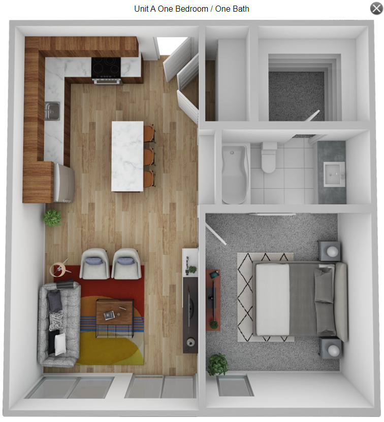 1 Bed, 1 Bath, 700 sq ftAvailable NowModel Gallery