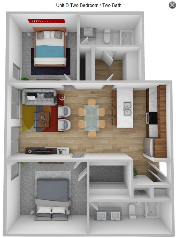 Apartment Model: DFrom $1,1952 Bedroom, 2 Bath, 1003 sq ftUnavailable![]()