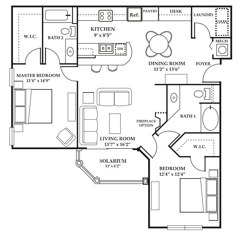 2 Beds, 2 Baths, 1241 sq ftAvailable NowModel Gallery