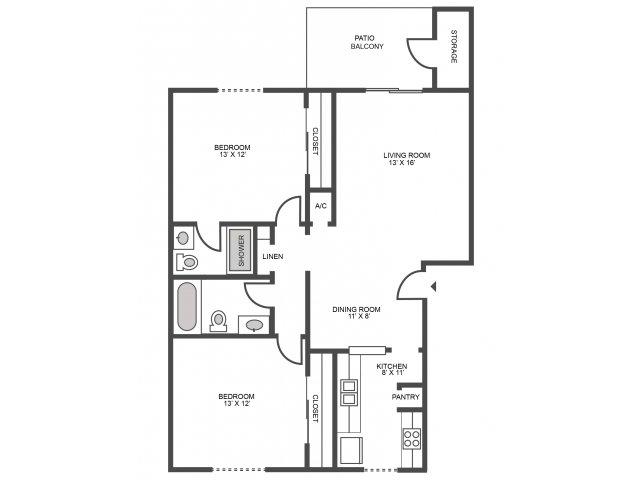 1 Bedroom / 1 Bathroom - Floorplan 1 2 Bedrooms