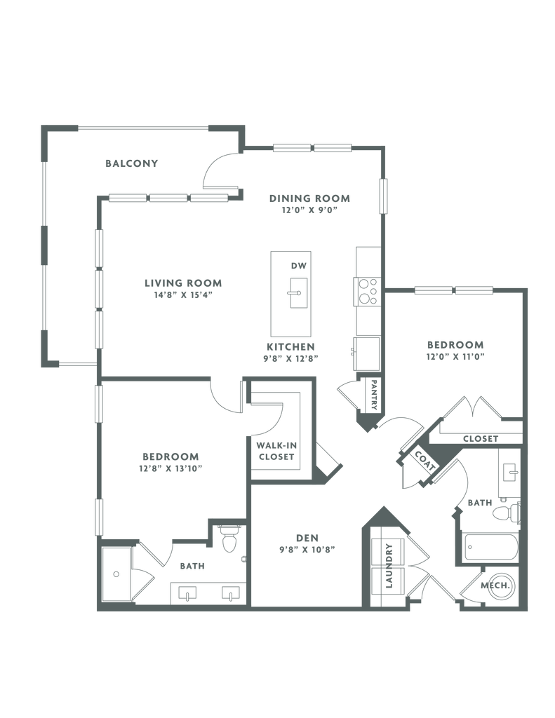 - 1, 2, & 3-Bedroom Floorplans