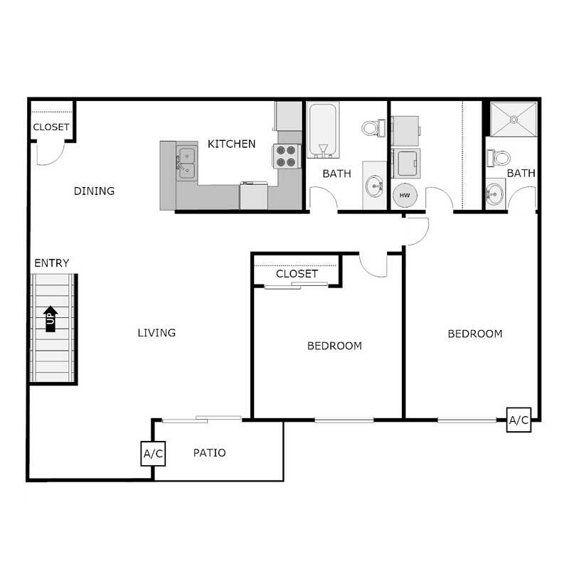 Apartment Model: 2 Bedroom 2 Bathroom - Lower$1,0952 Bedroom, 2 Bath, 1177 sq ftUnavailable![]()