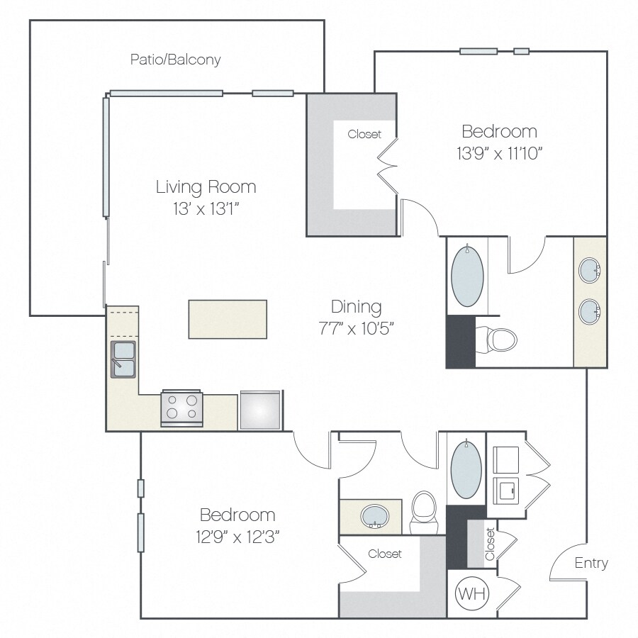2 Beds, 2 Baths, 1308 sq ftModel Gallery