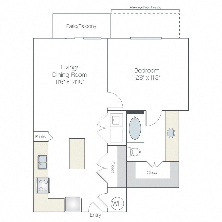 Apartment Model: A11 Bedroom, 1 Bath, 713-750 sq ftAvailable Now![]()