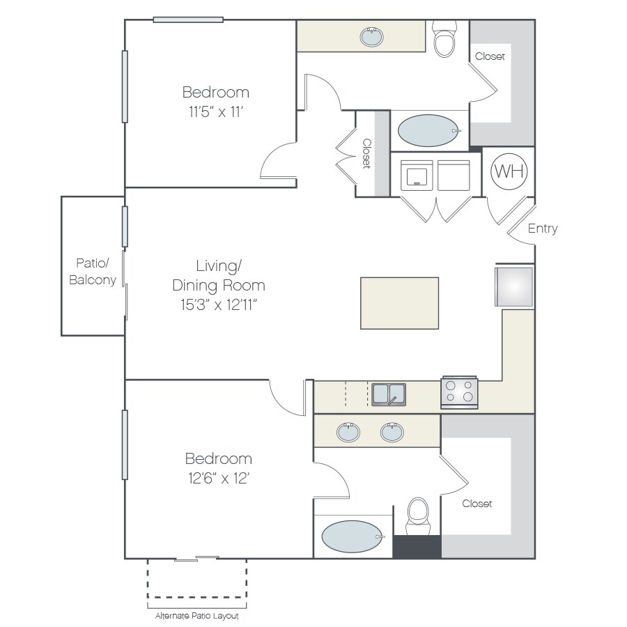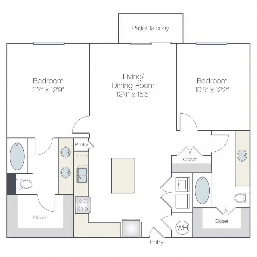 Apartment Model: B22 Bedroom, 2 Bath, 1125 sq ftAvailable Now![]()