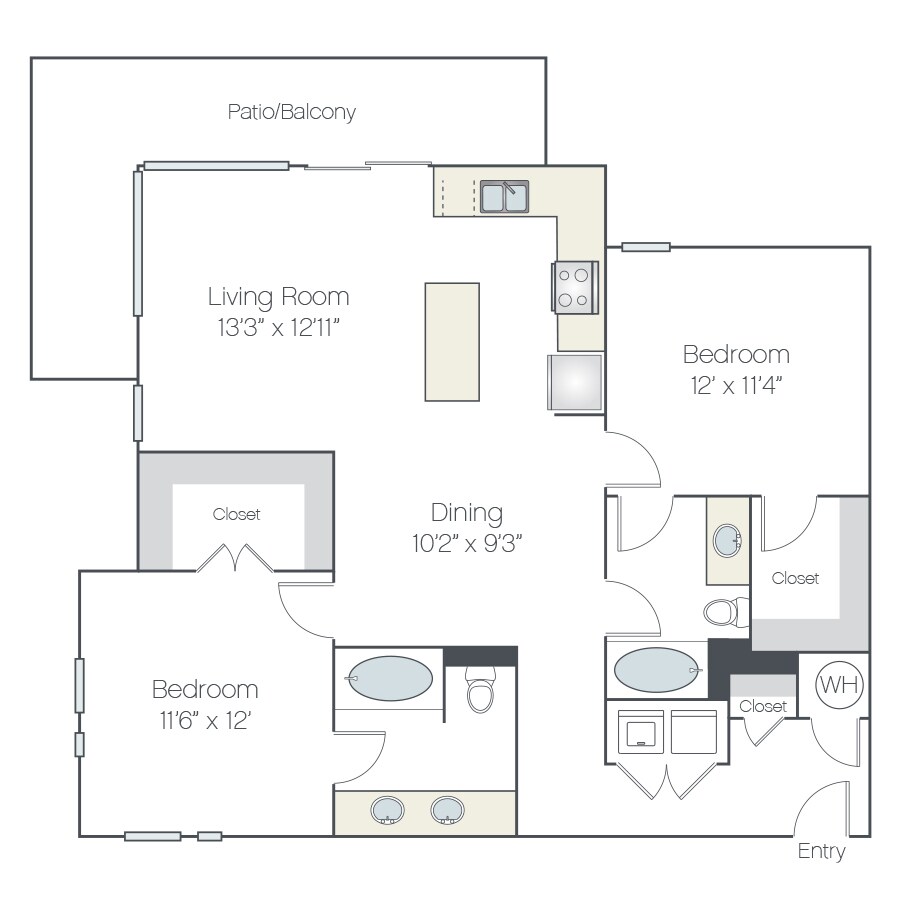 2 Beds, 2 Baths, 1072 sq ftModel Gallery