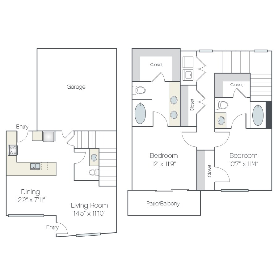 2 Beds, 2.5 Baths, 1830 sq ftAvailable NowLargest 2 BedroomThis is the largest 2 Bedroom at this PropertyModel Gallery