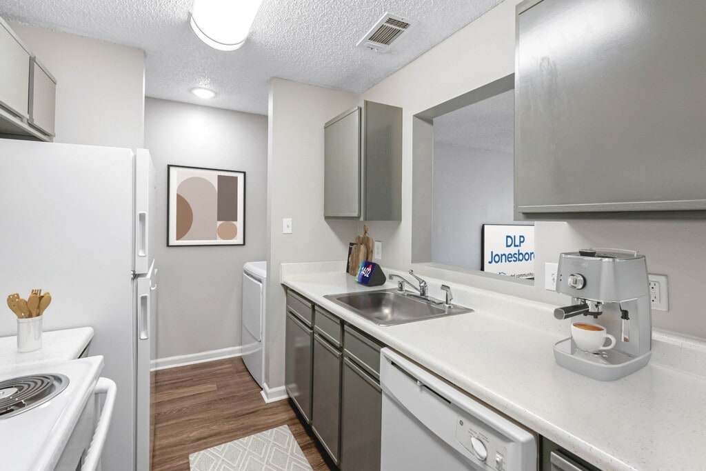 Experience the ideal blend of convenience, comfort, and community at DLP Jonesboro. Located just minutes from downtown Jonesboro and Arkansas State University, our pet-friendly community offers a peaceful retreat where lush green landscapes, modern amenities, and inviting spaces come together to create a place you’ll love to call home. Choose from our stylish one, two, and three-bedroom residences, each thoughtfully designed for modern living. Enjoy chef-inspired kitchens with sleek laminate countertops and single-basin sinks, unwind on your private balcony or patio, and revel in the luxury of wood-designed flooring and expansive walk-in closets. Vaulted ceilings and LED lighting add a touch of elegance in select homes, while convenient in-home features like side-by-side or stackable washers and dryers make daily living a breeze. At DLP Jonesboro, we believe a thriving community goes beyond the home. Our expansive array of community amenities offers something for everyone. Stay active in our full-circuit fitness center with cardio equipment, challenge friends at the basketball court, or take a peaceful stroll along our scenic walking trails. For relaxation, dip in the sparkling pool and enjoy the sundeck, host a cookout in the courtyard’s grilling area, or spend time with neighbors in our vibrant residential clubhouse. We are also a pet-friendly community with a dedicated Bark Park for your furry friends to run and play. Families will appreciate the on-site playground, and our 24-hour resident portal, flexible payment options, and professional on-site management make living here convenient and hassle-free. Discover a community where convenience meets comfort, and every feature is designed to help you thrive—welcome to DLP Jonesboro.