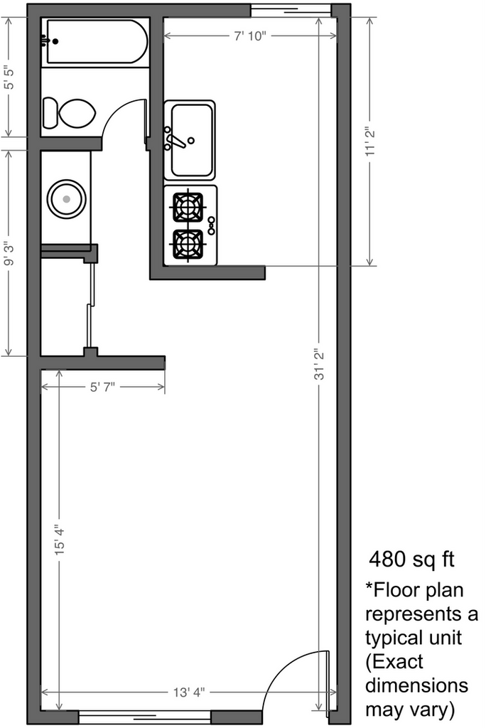 Studio, 1 Bath, 500 sq ftAvailable NowModel Gallery