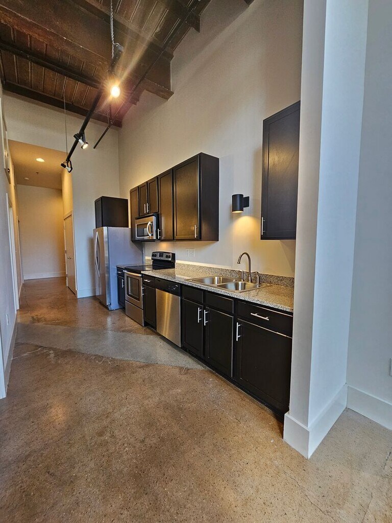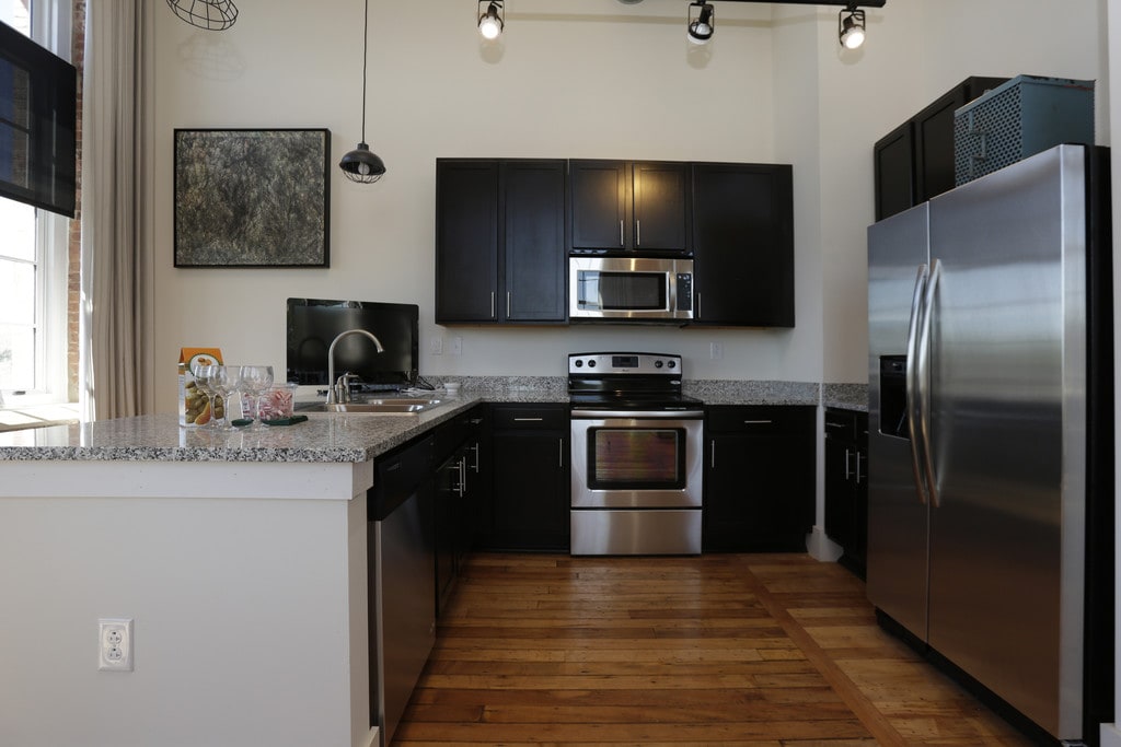 Premium One-bedroom, one-bath apartment home. These amazing apartments feature 19ft ceilings. This apartment home is located in our Weaving Building and has an indoor/outdoor atrium space. It also has stainless steel appliances and full-size front load washer and dryer. These apartments have walk-in closets and plenty of cabinet space. This 760 square foot has an open floor plan with all the space you need to move in.