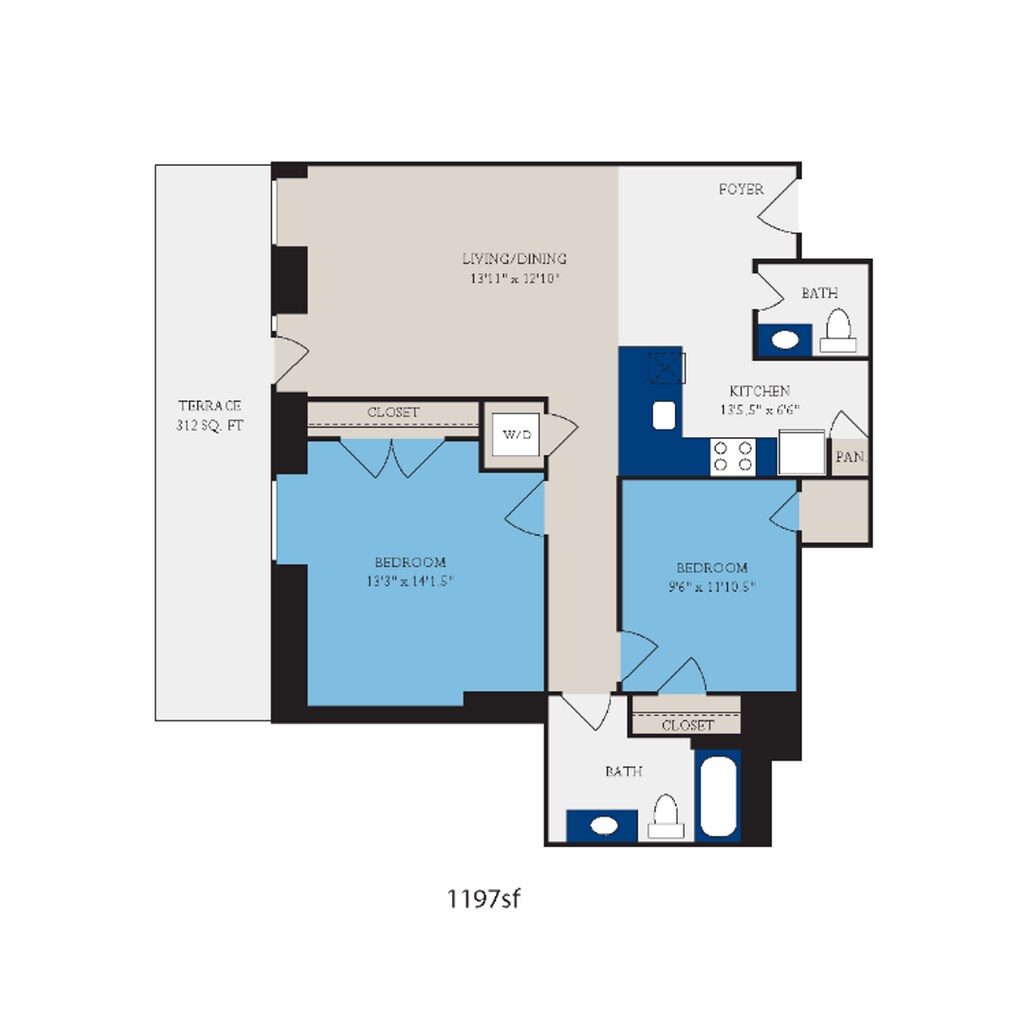 Apartment Model: W11B1 Bedroom, 1 Bath, 760 sq ftAvailable Now![]()