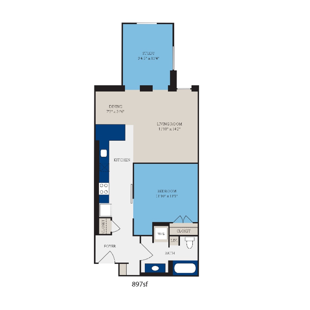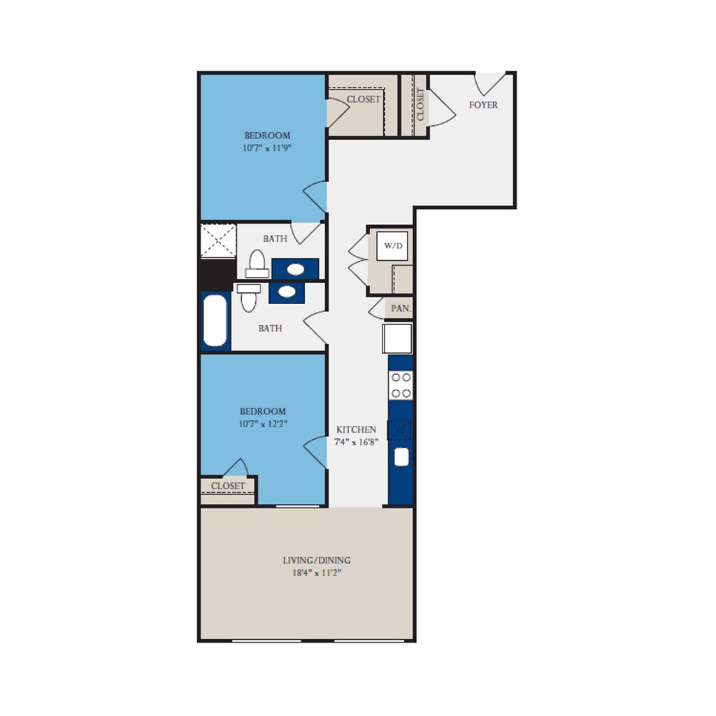 Apartment Model: W11G1 Bedroom, 1 Bath, 744 sq ftAvailable Now![]()