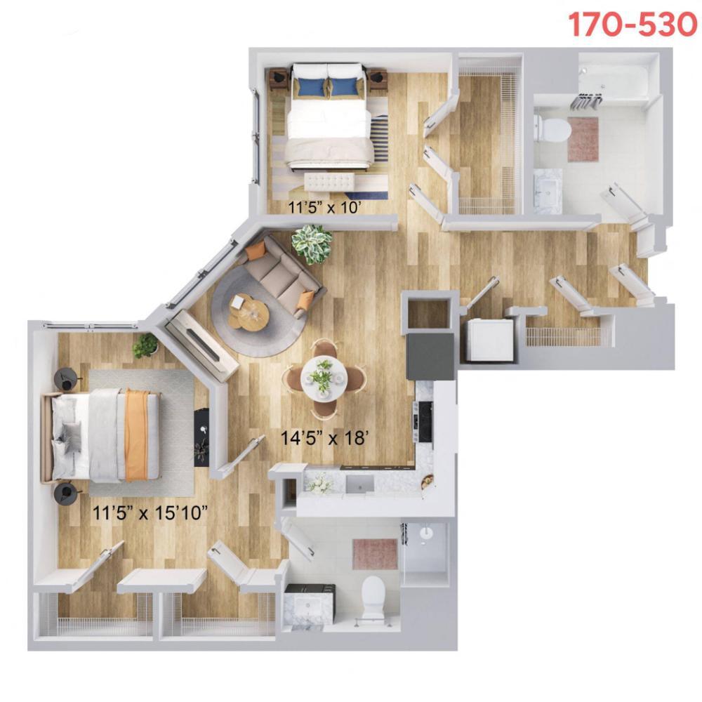 Unit: 170-129 - Image 1 Apartment Unit: 170-131Apartment Model: 1 BEDROOM$2,4861 Bedroom, 1 Bath, 660 sq ftAvailable Now![]()