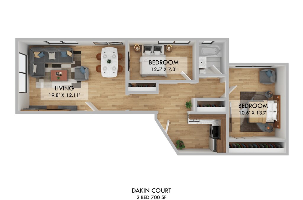2 Beds, 1 Bath, 700 sq ftModel Gallery
