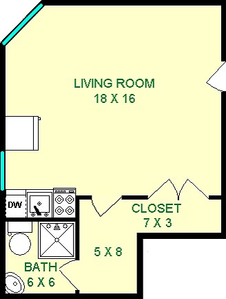 Apartment Model: NelsonStudio, 1 Bath, 390 sq ftAvailable June 1, 2026![]()