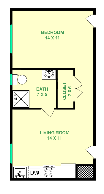 Studio, 1 Bath, 425 sq ftAvailability Details