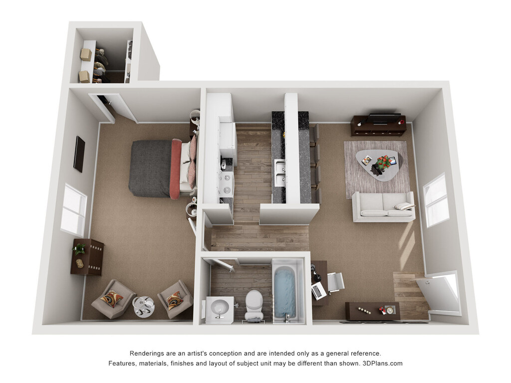 1 Bed, 1 Bath, 500 sq ftAvailable NowModel Gallery