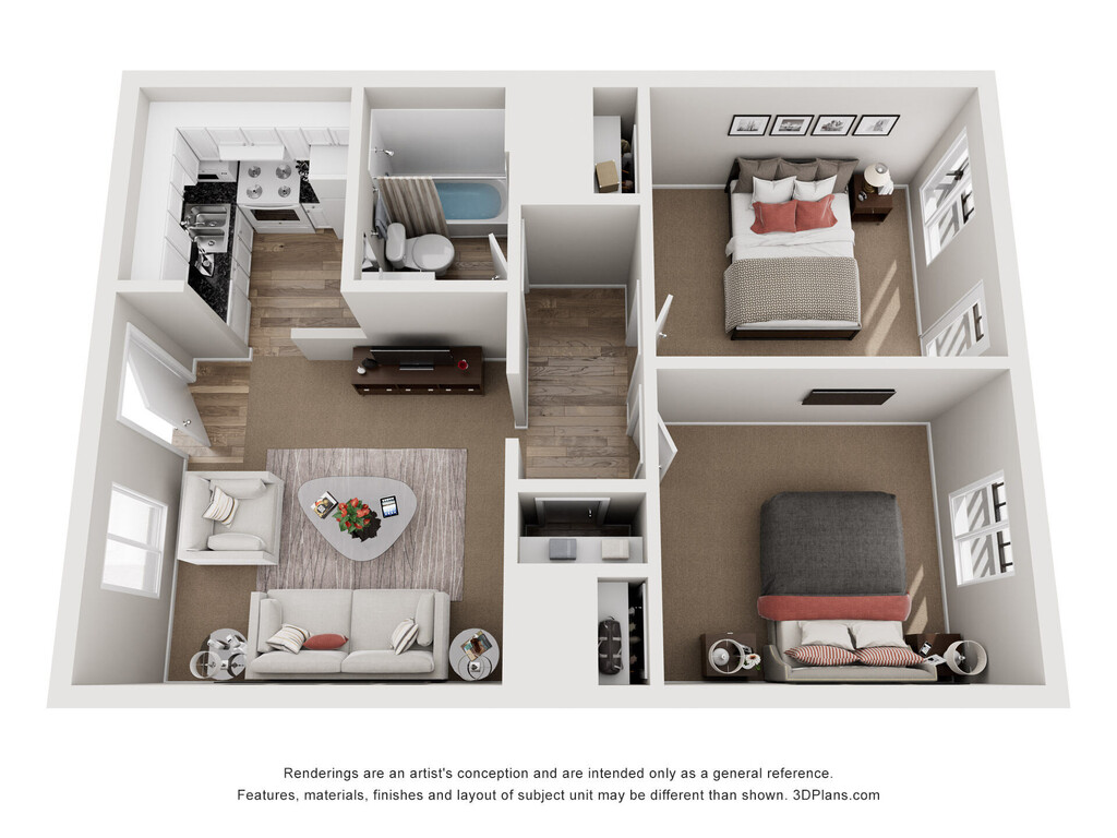 2 Beds, 1 Bath, 800 sq ftAvailable NowModel Gallery