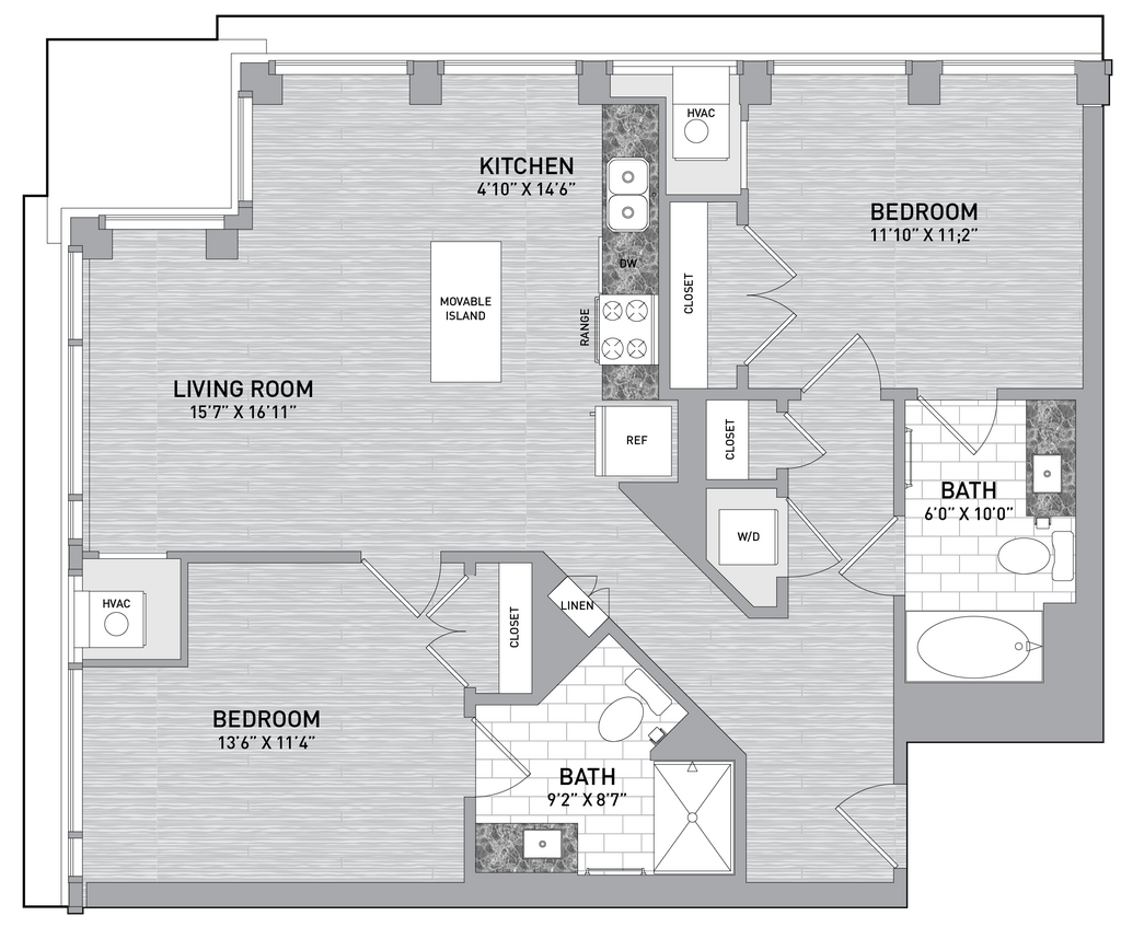 Apartment Model: 28 Stack - 1 Bed 1 Bath-A2From $2,6101 Bedroom, 1 Bath, 804 sq ftAvailable Now![]()