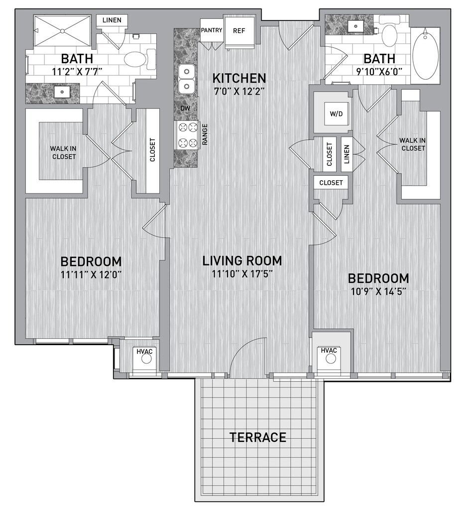 Apartment Model: 27/29 Stack - 1 Bed 1 Bath-A1.1$2,5851 Bedroom, 1 Bath, 771 sq ftAvailable Now![]()