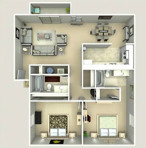 Apartment Model: 2bed 2bath$1,0502 Bedroom, 2 Bath, 1000 sq ftAvailable Now![]()