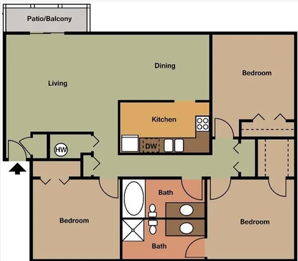 Apartment Model: 2bed 2bathFrom $1,0992 Bedroom, 2 Bath, 1200 sq ftAvailable Now![]()