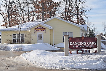 Single level, 36-unit 9 building, 55 and older four-plex apartments. * Income Restricted. Dancing Oaks is in a quiet and beautiful country setting away from all of the traffic noise. Enjoy all of the pleasures of nature and the outdoors, yet take advantage of the conveniences of historic downtown Menomonie, just minutes away. This friendly and inviting community offers you all of the amenities and comforts of apartment living with the freedom to enjoy your active lifestyle without all of the demands of home ownership. Dancing Oaks is located in the east part of Menomonie, with scenic views in all directions; we offer 1 and 2-bedroom apartments in a four-plex configuration. All apartments are single level with attached garages and private entries with patios. Amenities include the following: Beautifully landscaped with scenic views in every direction Private front entries Attached garage with automatic opener Full size appliances include: electric stove, refrigerator, microwave, dishwasher, disposal, and washer/dryer Walk-in laundry room with pantry and storage shelving Oak cabinetry throughout Most bathrooms with walk-in showers Mini-blinds, cable, telephone and Internet access in each room Unit controls for heating and cooling In-floor heating which runs at off-peak hours with electric baseboard heaters as back-up Electric water heaters Wall unit air conditioners Sewer and water and trash removal included Walking trails Furnished three-season gazebo for a quiet getaway or family function Furnished community room with fireplace and billiard table (for private or community functions); furnished outdoor patio/grilling area Library area and an exercise room for your enjoyment Business center complete with Internet access, and a fax and copy machine during office hours Snow removal and lawncare with irrigation system On-site management On-call maintenance 50% Unit Income Limits: 1 Person: $28,750 2 People: $32,850 60% Unit Income Limits: 1 Person: $34,500 2 People: $39,420