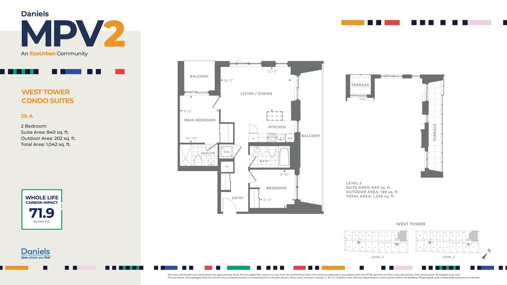Welcome to MPV2 in the heart of Brampton's Mount Pleasant Village. A selection of our thoughtfully designed suites, from bright 1-bedroom layouts to spacious 2-bedroom plus den layouts, are available for rent. These brand-new homes offer open-concept living, modern finishes and sustainable features that will enhance your everyday life. With features such as quartz countertops, laminate flooring, smooth ceilings, and an in-suite washer and dryer, all that is missing is your personal touch. The community features over 12,000 sq. ft. of indoor and outdoor resident-exclusive amenities including a Co-Working Space, Games Lounge, Fitness Centre, Active Zone with climbing wall and obstacle course, Party Room, Outdoor Dining & Lounge Areas and more. MPV2 is professionally managed by Daniels Gateway Renal Communities. Our dedicated team is committed to ensuring your rental experience is a breeze. From overseeing maintenance to swiftly addressing unit repairs, we’ve got the nuts and bolts covered. Our team is just a call away whenever you need support. Plus, rent and save for future homeownership with the Daniels Home Investment Program (HIP™) – where you can accumulate HIP Dollars towards the purchase of a brand-new Daniels home.