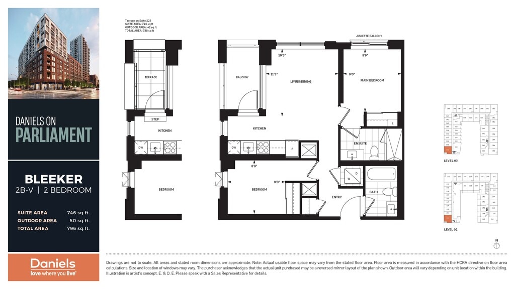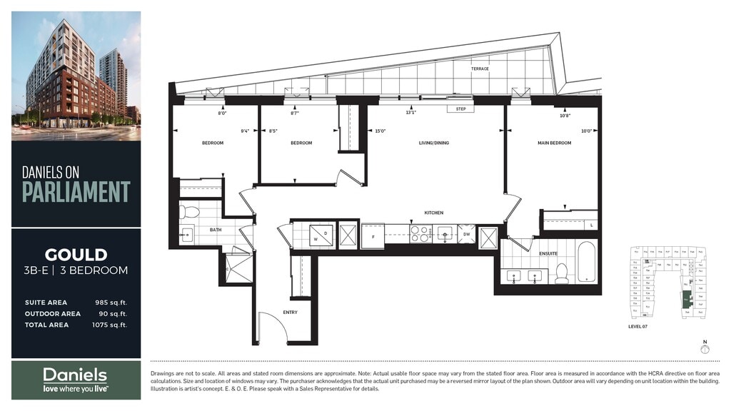 Daniels on Parliament offers 1 to 3 Bedroom apartments starting from $2,210 and having 502–1,074 sq ft. Here is the current pricing and availability: