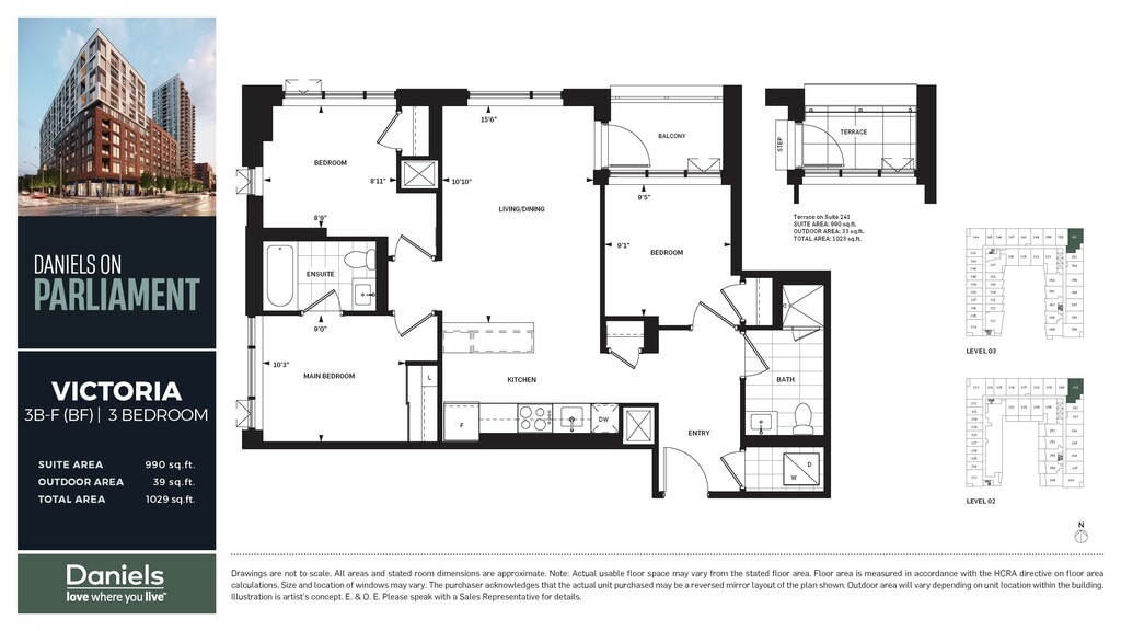 1 Bedroom to 3 Bedroom Apartments at Daniels on Parliament currently range from $2,210 to $3,660