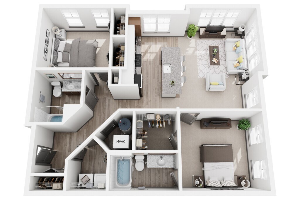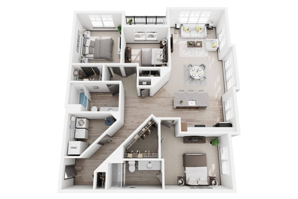 1 Bed, 1 Bath, 744 sq ftModel Gallery