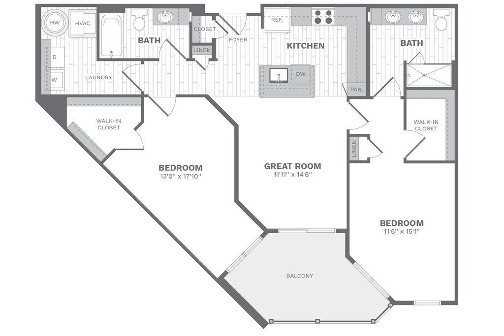 1 Bed, 1 Bath, 946 sq ftLargest 1 BedroomThis is the largest 1 Bedroom at this PropertyModel Gallery