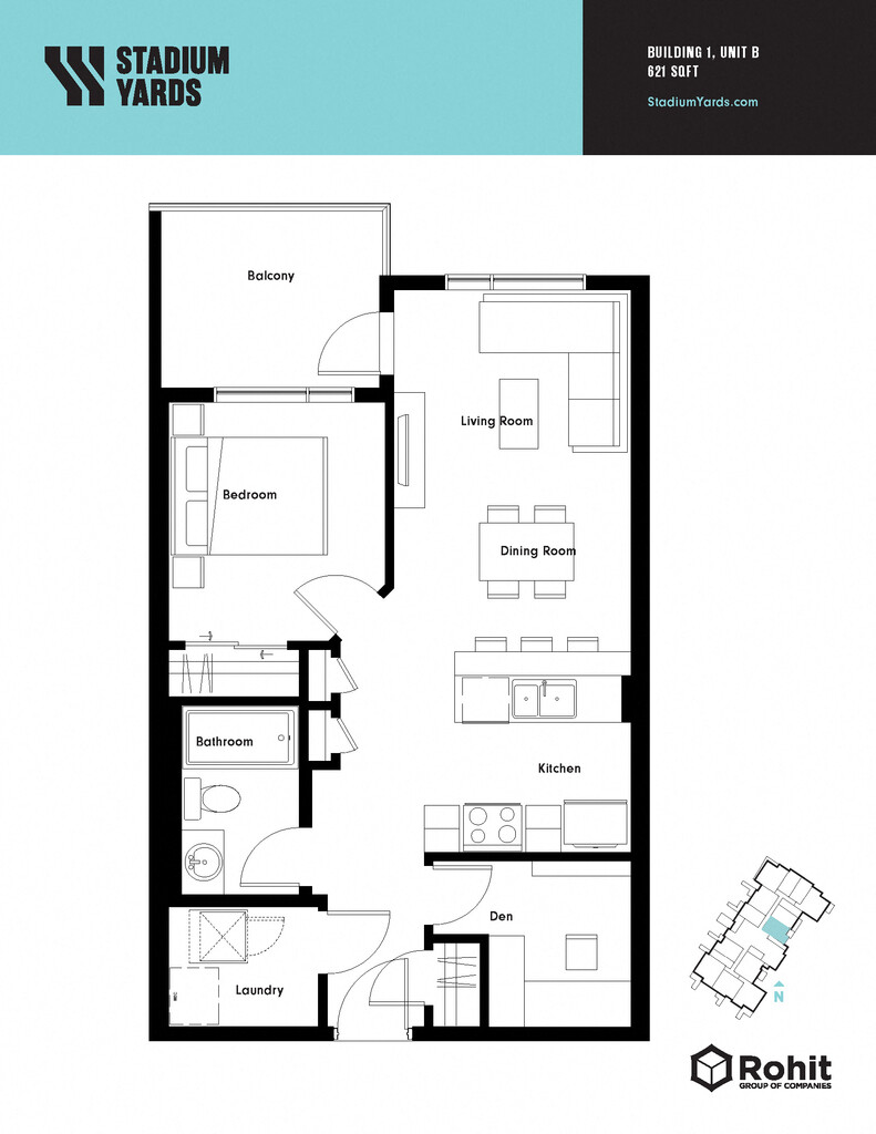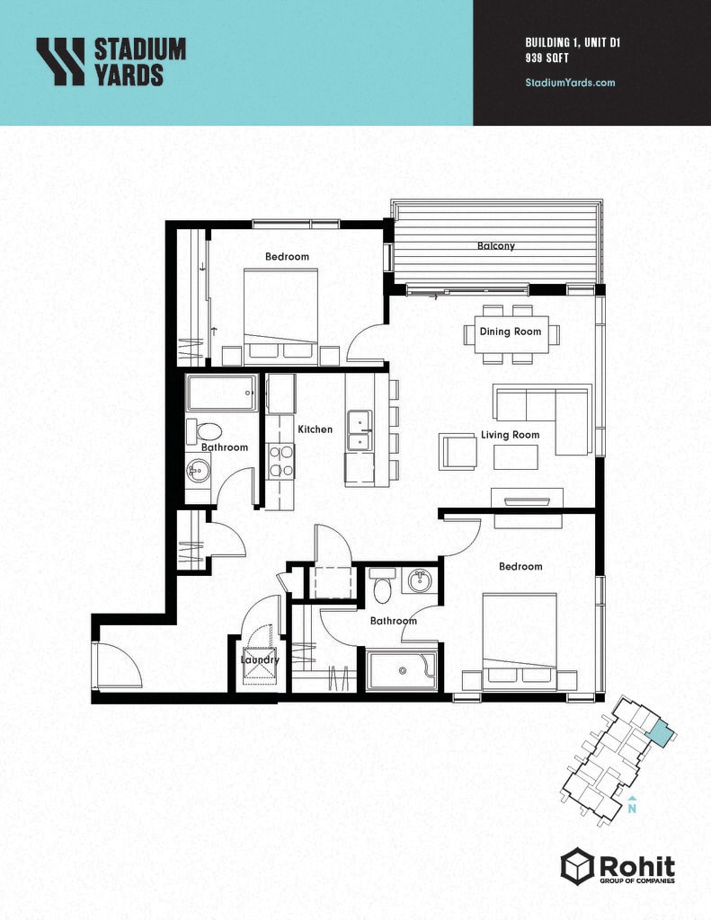 Dauk Commons At Stadium Yards offers 1 to 3 Bedroom apartments starting from $1,445 and having 500–1,057 sq ft. Here is the current pricing and availability: