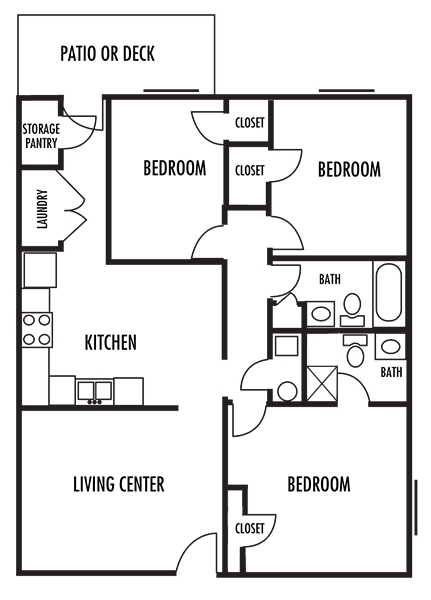 3 Beds, 2 Baths, 1100 sq ftModel Gallery