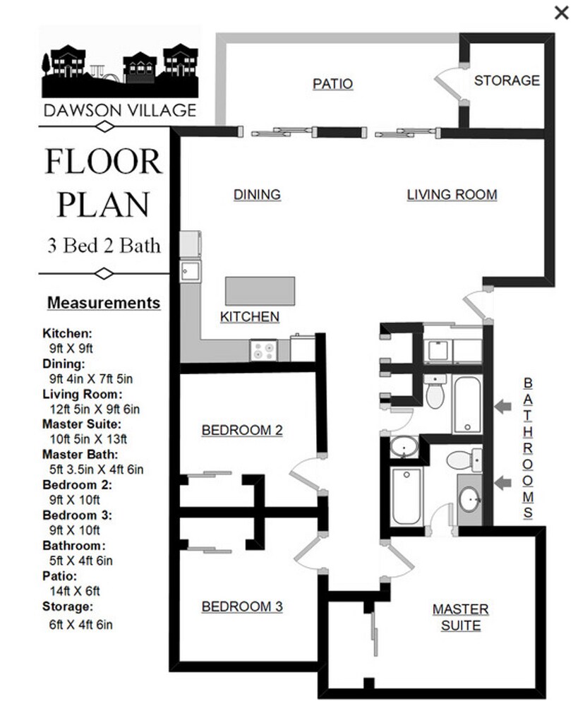 2 Bedroom to 3 Bedroom Apartments at Dawson Village Apartments currently range from $1,795 to $1,850