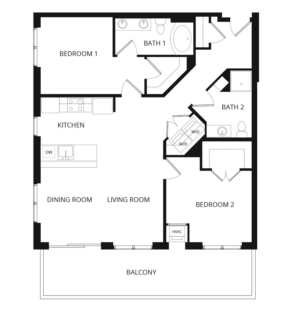 Studio to 2 Bedroom Apartments at Daymark Uptown currently range from $1,120 to $3,430