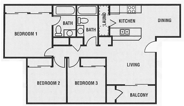 Apartment Model: Dayton Valley Village II B3 Bedroom, 2 Bath, 1050 sq ftUnavailableDayton Valley Village II B - Floorplan 1