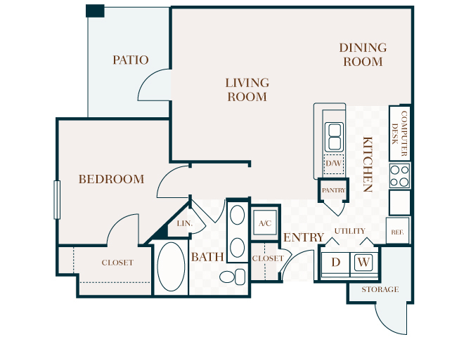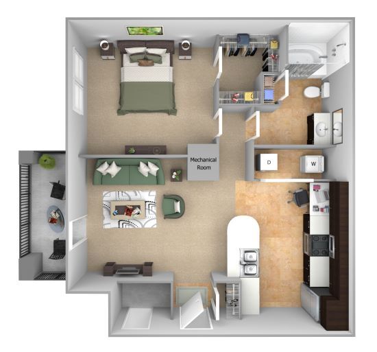 1 Bed, 1 Bath, 812 sq ftAvailable NowLargest 1 BedroomThis is the largest 1 Bedroom at this PropertyModel Gallery