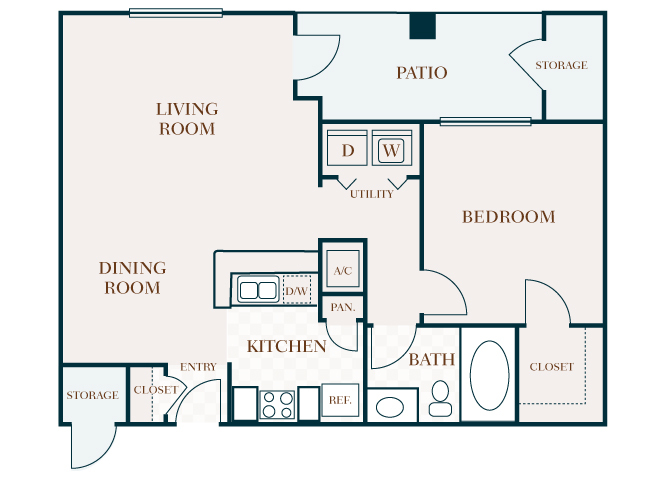 Apartment Model: A1From $1,1301 Bedroom, 1 Bath, 695 sq ftAvailable Now![]()