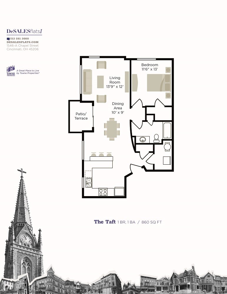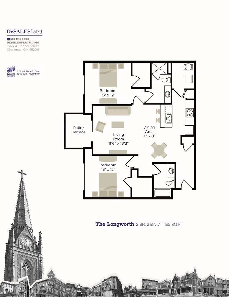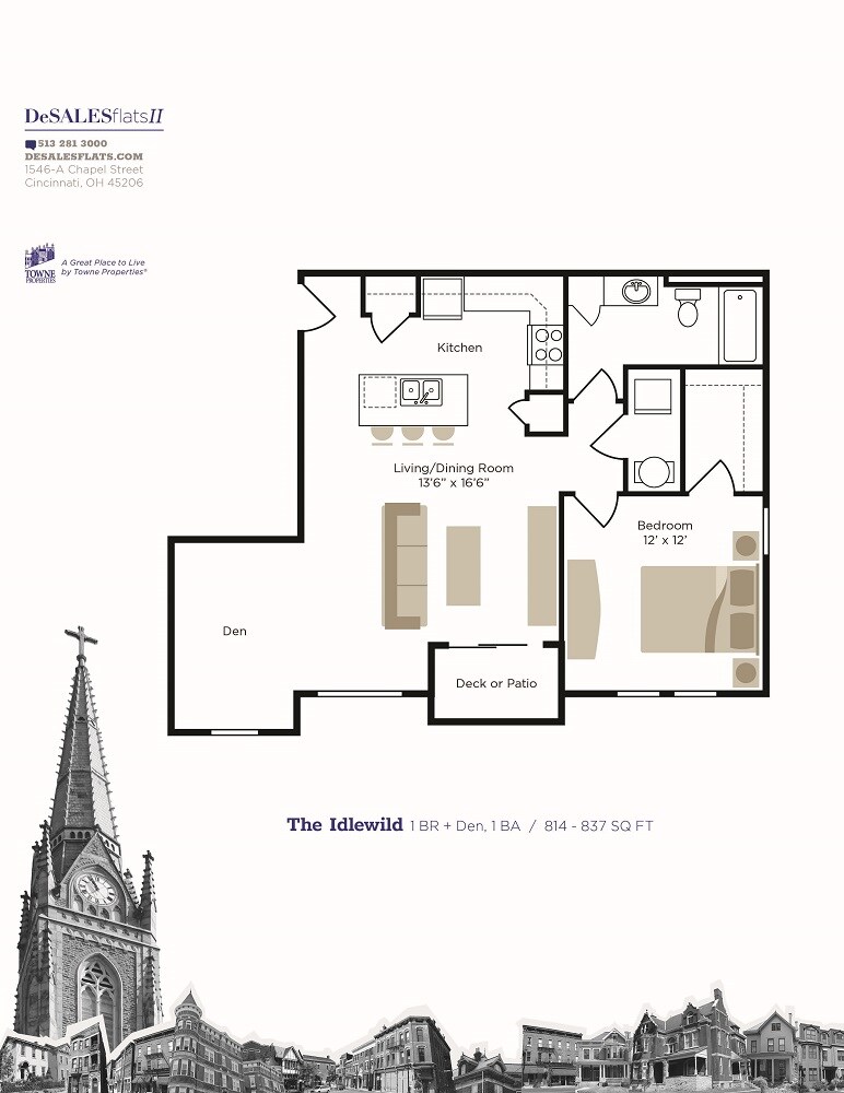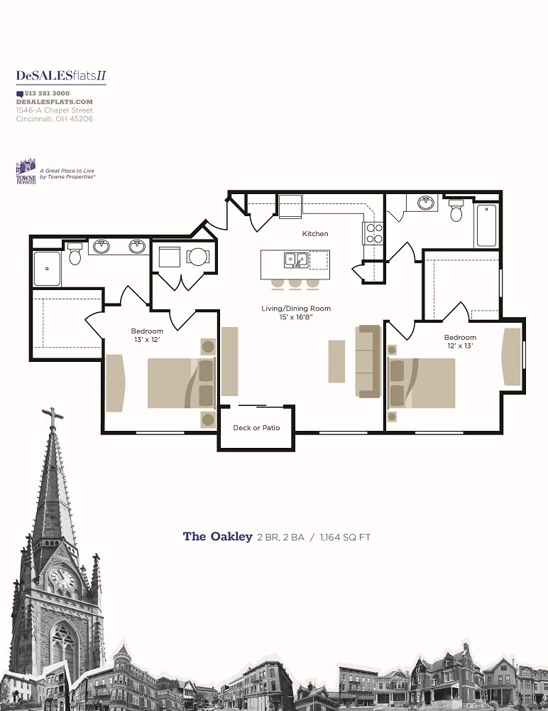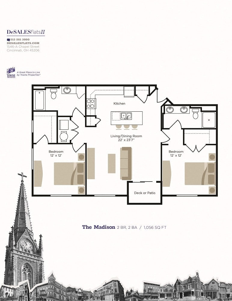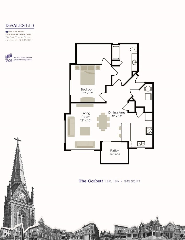 Located in the heart of historic East Walnut Hills, you'll enjoy the neighborhood's charm and delight in the urban feel with all the restaurants, pubs, and shops along Woodburn Avenue, crowned by the magnificent St. Francis DeSales Church. Minutes from the new MLK/I-71 interchange, downtown, the University of Cincinnati, the major hospitals, and Xavier University, the Flats is truly just minutes from everything! DeSales Flats is earth-friendly as the city's first LEED* gold multi-family community. The Flats offer beautifully designed and equipped one and two-bedroom apartment homes and an amenity package second to none. We think you'll agree that this is another Great Place to Live by Towne Properties, the region's most honored developer since 1961. *Information submitted through this marketing source to the property management company is not used to determine rental eligibility*