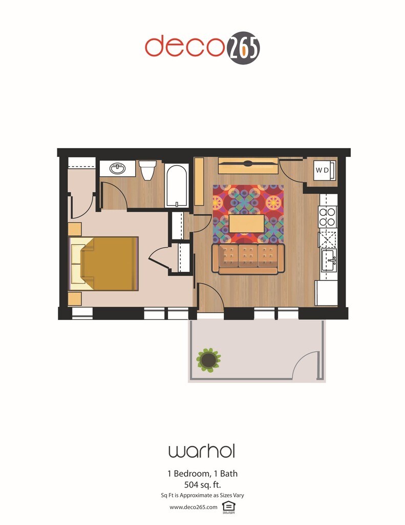 Apartment Model: WarholCall For Rates1 Bedroom, 1 Bath, 504 sq ftUnavailableWarhol - Floorplan 1 Sculpture - Jr 1 Bedroom
