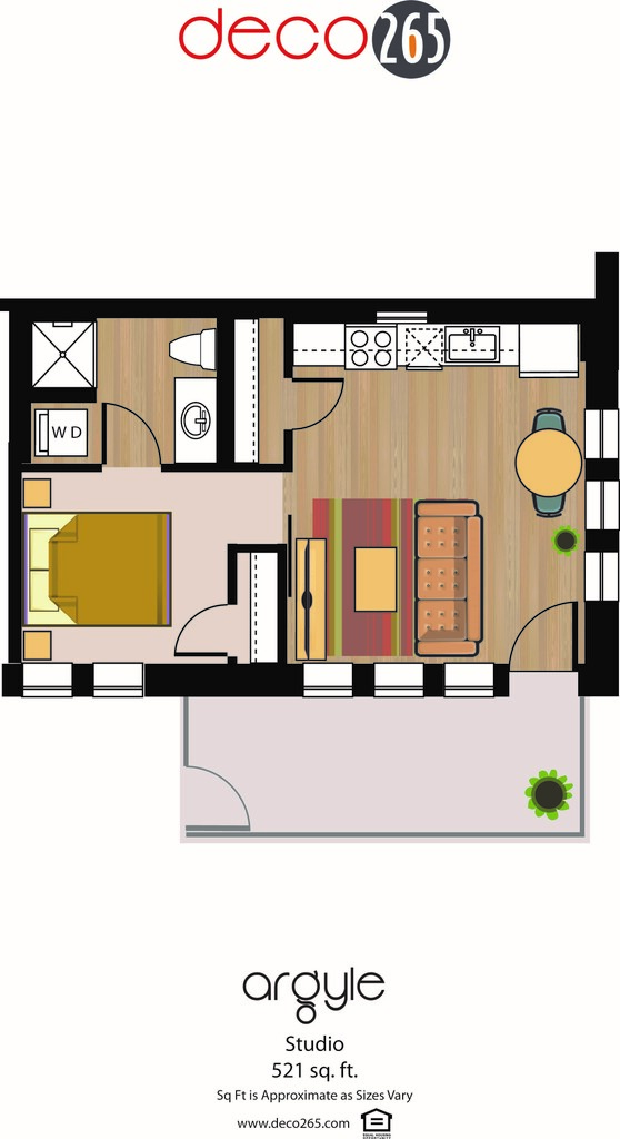 Apartment Model: ArgyleCall For RatesStudio, 1 Bath, 521 sq ftUnavailableArgyle - Floorplan 1 1 Bedroom