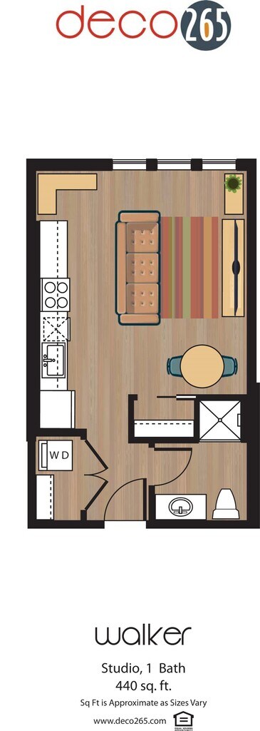 Apartment Model: WalkerCall For RatesStudio, 1 Bath, 440 sq ftUnavailableWalker - Floorplan 1 Dali